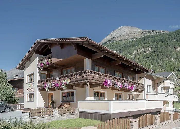Ferienhaus Apart Sonnzeit Villa, som erbjuder soldäck och solterrass, ligger 6 minuter till fots från Bergbahnen Solden. Villan erbjuder möjligheter till vandring, hästridning och bowling i området, 2 km från Rotkogl.